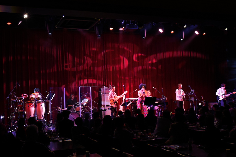 このバンド、とにかくメンバーがすごい。小倉泰治(Key)、鈴木明男(Sax)、斉藤ノヴ(Perc)、Kenny Mosley(Dr)という、超が付くほどのベテラン揃い。今でこそ“シティポップ”というジャンルは確立され世界的なものとなっているが、シティポップという呼び名もまだ無く、ニューミュージック、AOR、R&Bなどと呼んでいた1970〜1980年代において、杏里をはじめとした当時のアーティストのレコーディングやライブを支えた名うてのプレーヤーたちだ。植田浩二(G)、小松秀行(B)の2人ももちろんベテランではあるが、このなかに入ればひよっこも同然。そこに加わるChloe(Cho, Vo)、Gary Adkins(Cho, Vo)といった、さらに一世代若いシンガー2人。音楽は世代を超えた共通言語であることを実感させるメンツだ。