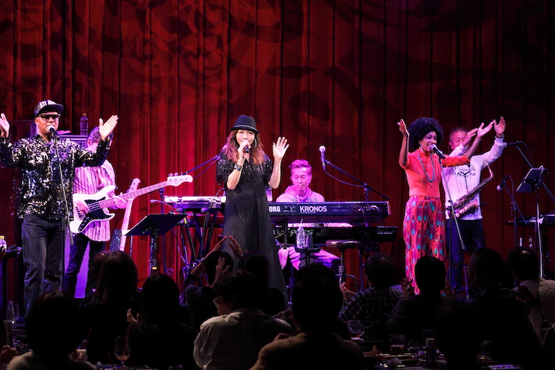 そしてアンコールの最後は、再び杏里を迎えて彼女の代表曲「悲しみがとまらない」だ。観客が総立ちになった同曲。杏里が客席にマイクを向けると、サビを歌う観客の大合唱。天井にはミラーボールが回って実に華やかな雰囲気でライブを締めくくった。